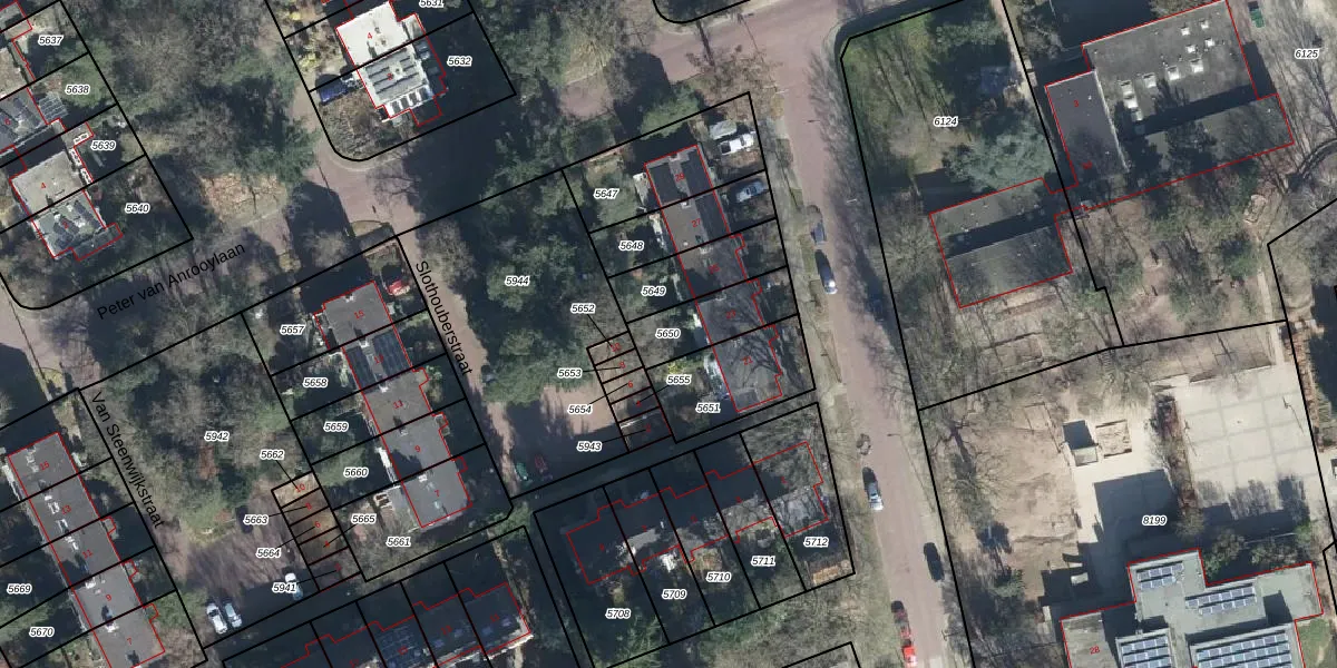 Gebruik de zoekbalk of klik op een perceel om informatie over het perceel te bekijken.