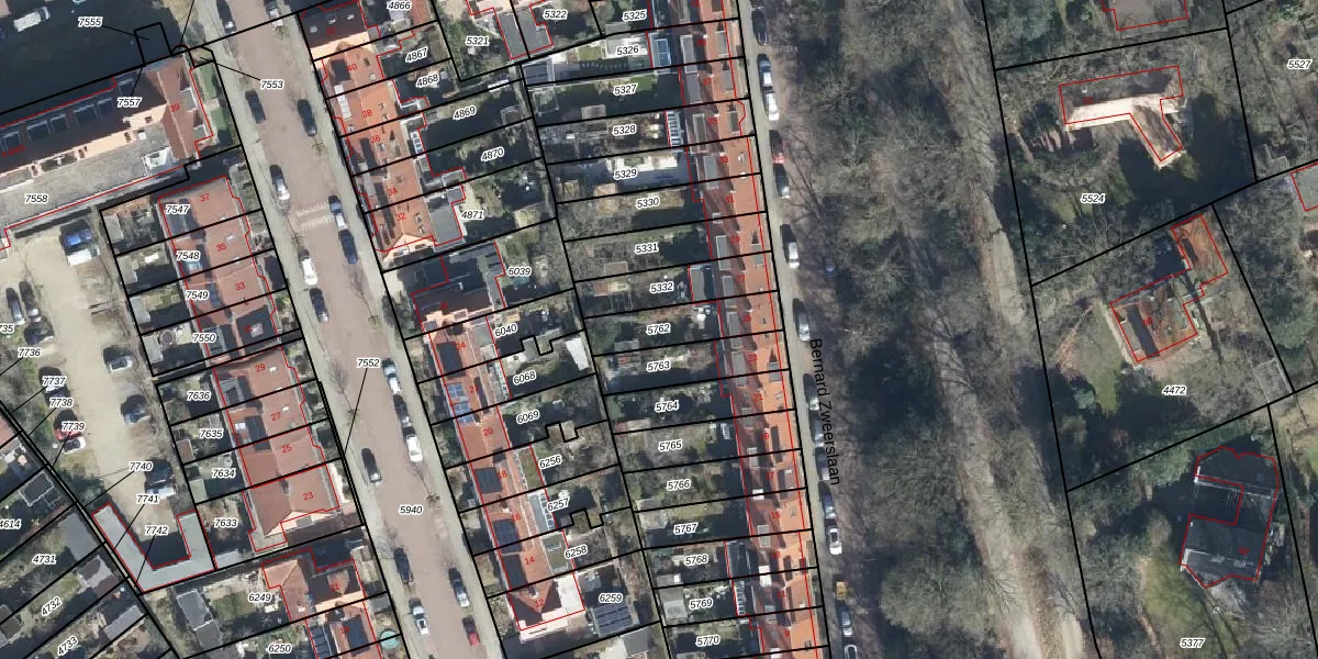 Gebruik de zoekbalk of klik op een perceel om informatie over het perceel te bekijken.