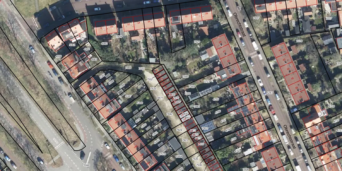 Gebruik de zoekbalk of klik op een perceel om informatie over het perceel te bekijken.