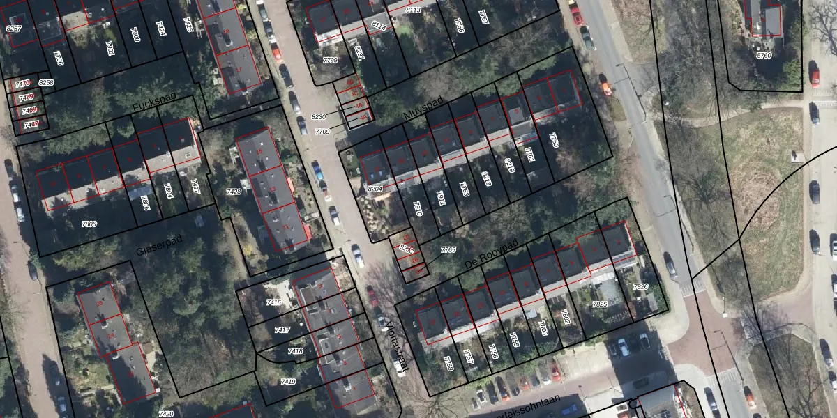 Gebruik de zoekbalk of klik op een perceel om informatie over het perceel te bekijken.