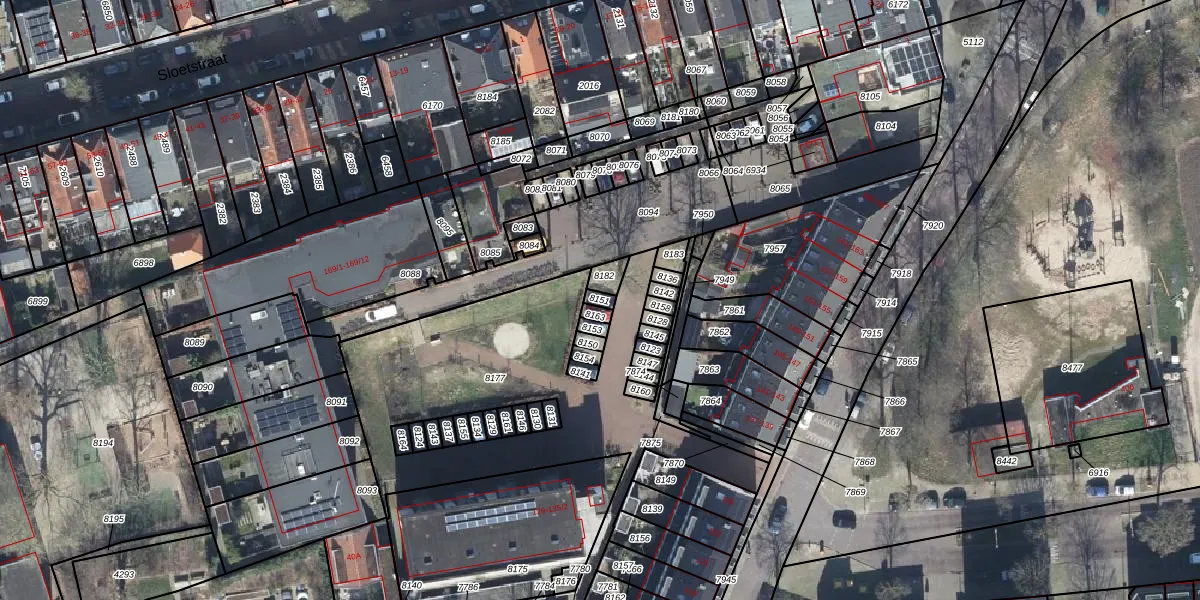 Gebruik de zoekbalk of klik op een perceel om informatie over het perceel te bekijken.