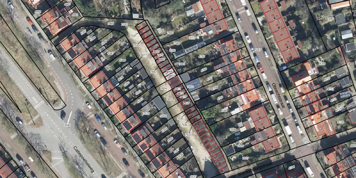 Gebruik de zoekbalk of klik op een perceel om informatie over het perceel te bekijken.