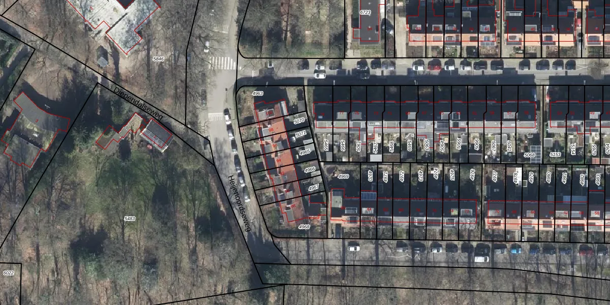 Gebruik de zoekbalk of klik op een perceel om informatie over het perceel te bekijken.