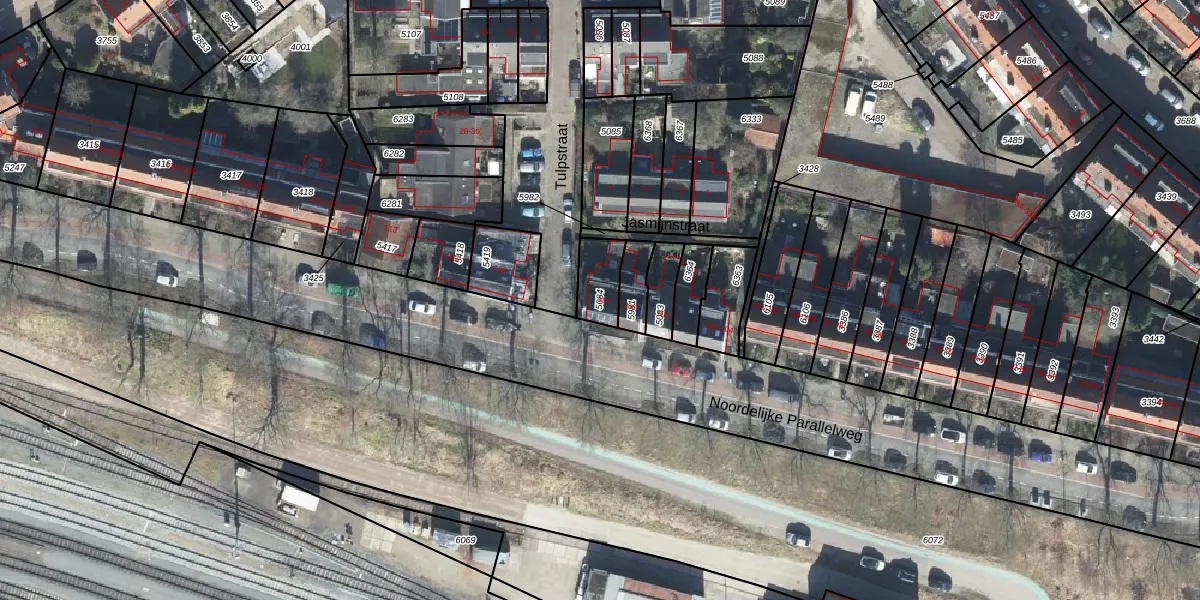 Gebruik de zoekbalk of klik op een perceel om informatie over het perceel te bekijken.