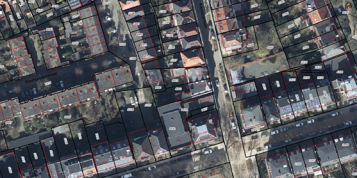 Gebruik de zoekbalk of klik op een perceel om informatie over het perceel te bekijken.