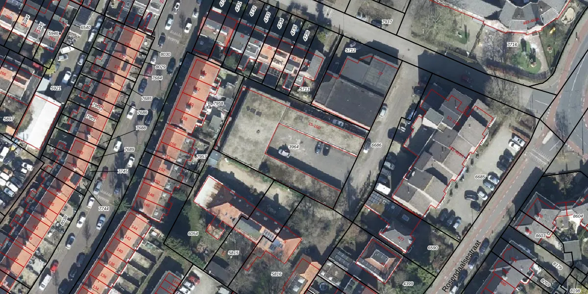 Gebruik de zoekbalk of klik op een perceel om informatie over het perceel te bekijken.