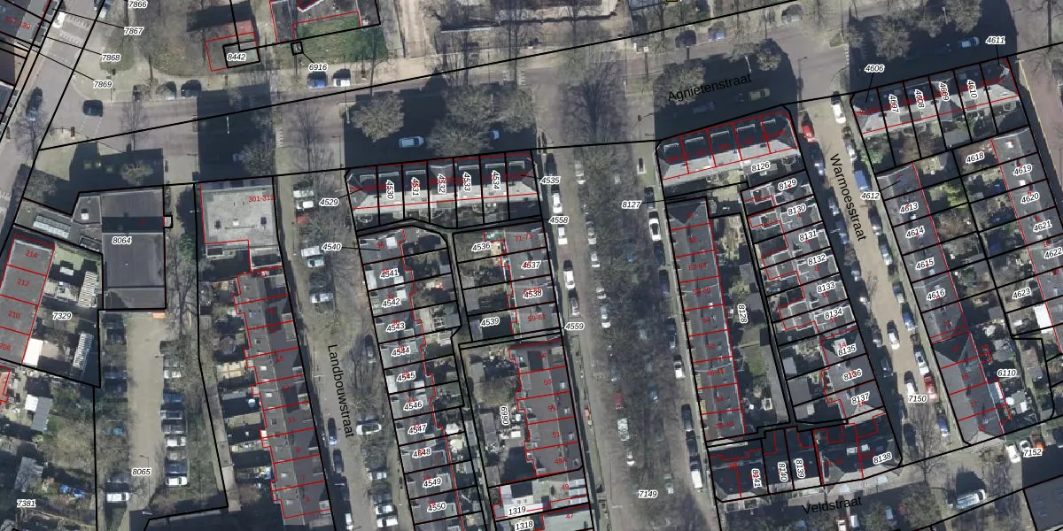 Gebruik de zoekbalk of klik op een perceel om informatie over het perceel te bekijken.
