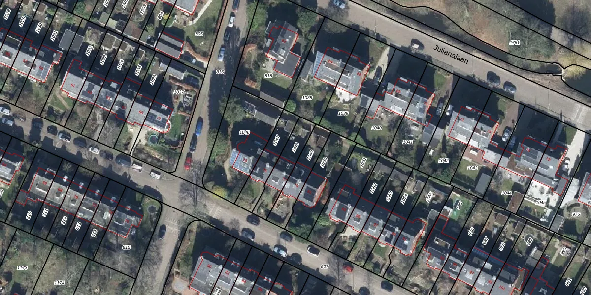 Gebruik de zoekbalk of klik op een perceel om informatie over het perceel te bekijken.