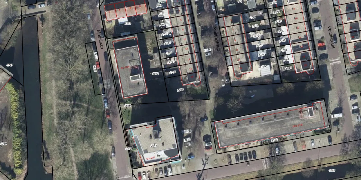 Gebruik de zoekbalk of klik op een perceel om informatie over het perceel te bekijken.