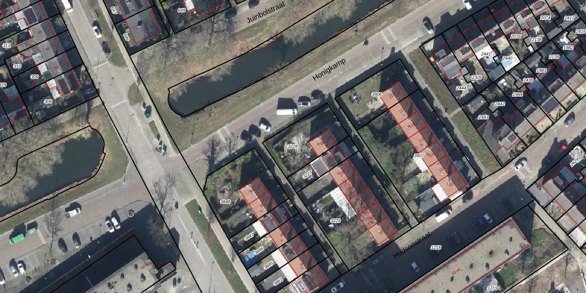 Gebruik de zoekbalk of klik op een perceel om informatie over het perceel te bekijken.