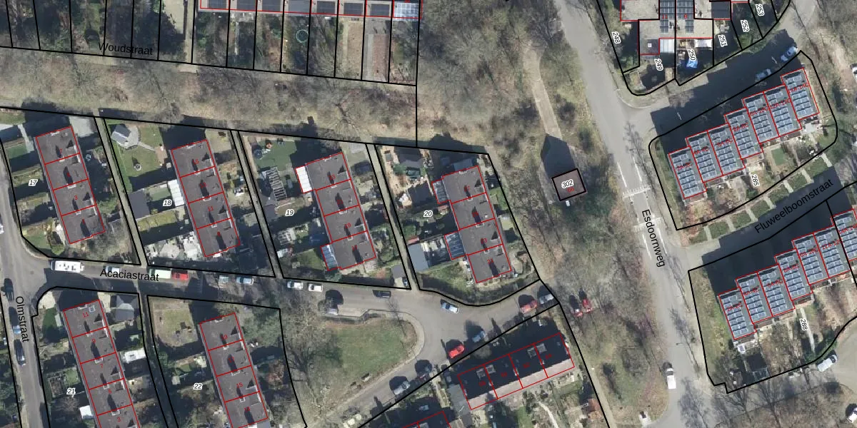Gebruik de zoekbalk of klik op een perceel om informatie over het perceel te bekijken.