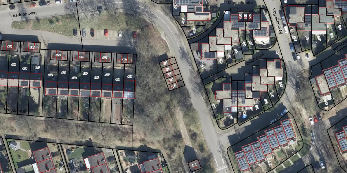 Gebruik de zoekbalk of klik op een perceel om informatie over het perceel te bekijken.