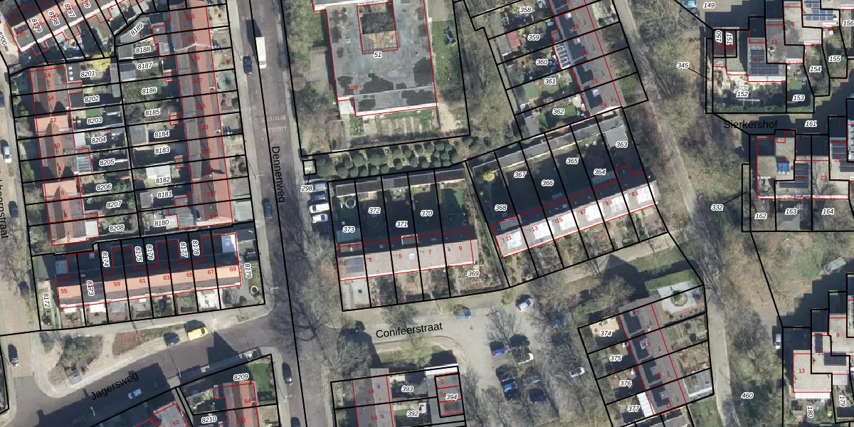 Gebruik de zoekbalk of klik op een perceel om informatie over het perceel te bekijken.