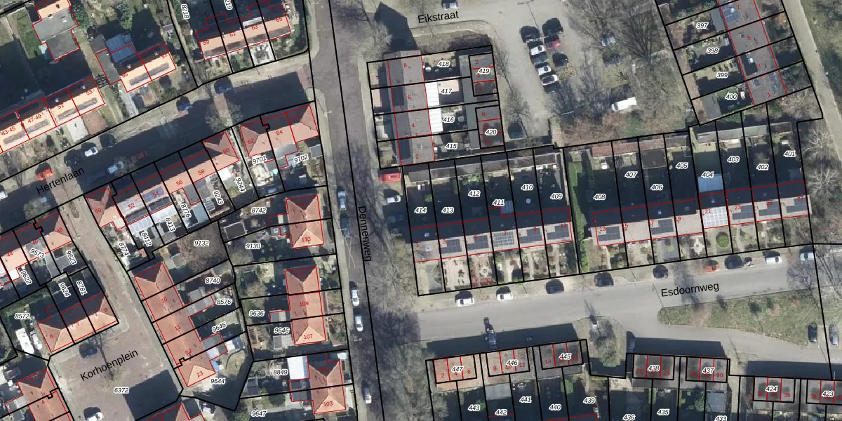 Gebruik de zoekbalk of klik op een perceel om informatie over het perceel te bekijken.