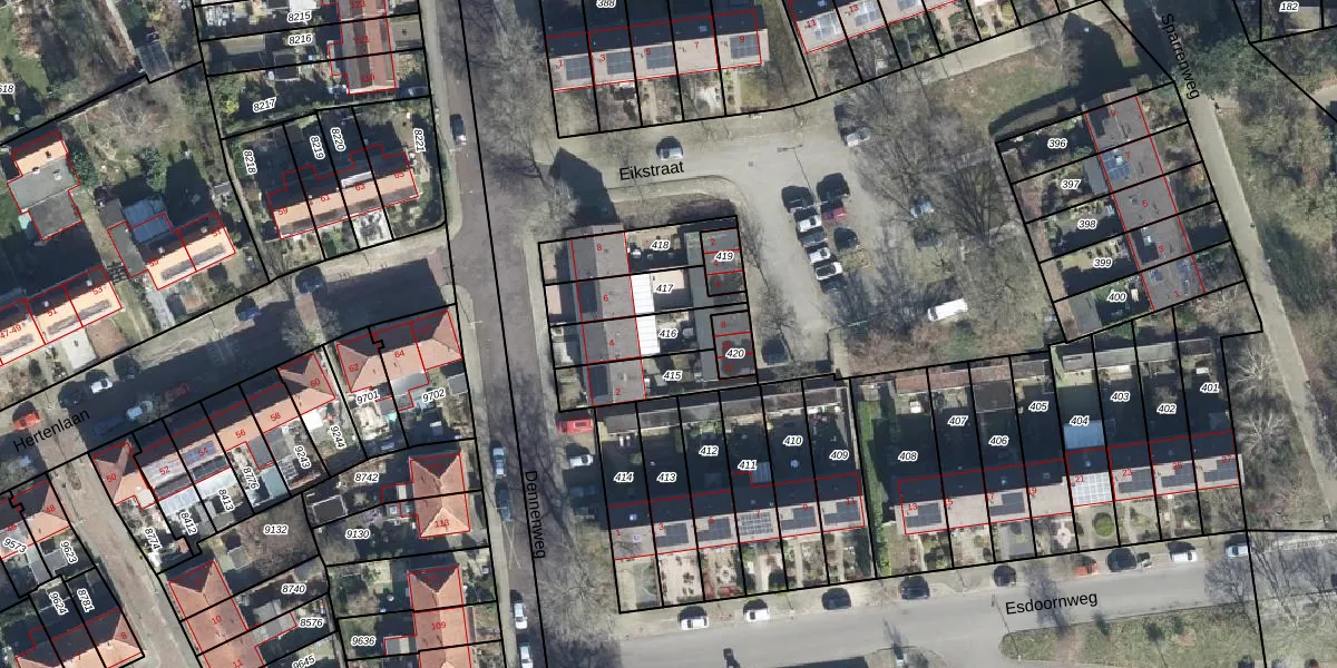 Gebruik de zoekbalk of klik op een perceel om informatie over het perceel te bekijken.