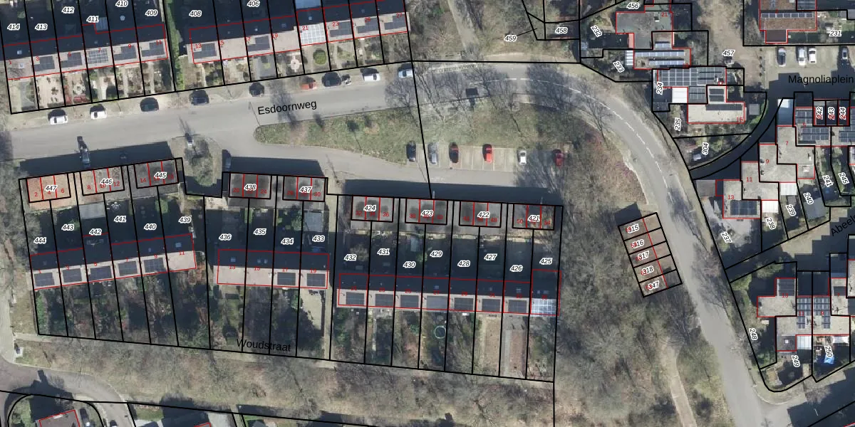 Gebruik de zoekbalk of klik op een perceel om informatie over het perceel te bekijken.