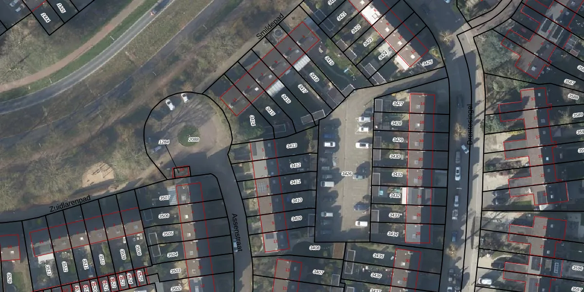 Gebruik de zoekbalk of klik op een perceel om informatie over het perceel te bekijken.