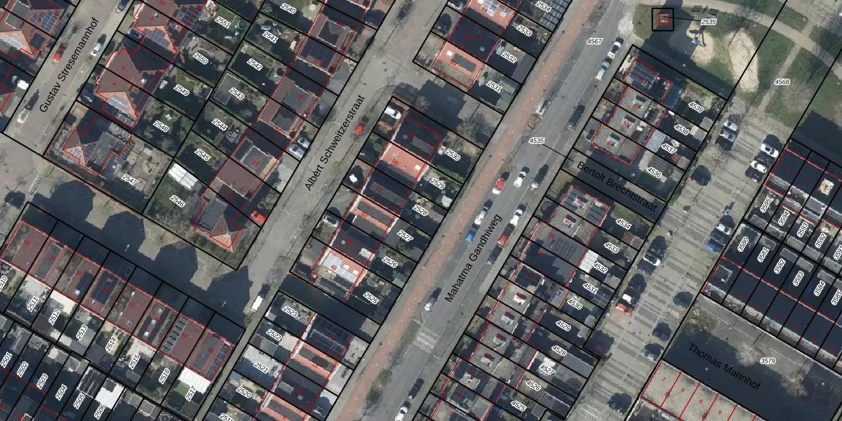Gebruik de zoekbalk of klik op een perceel om informatie over het perceel te bekijken.