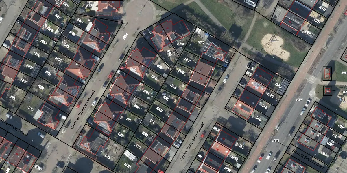 Gebruik de zoekbalk of klik op een perceel om informatie over het perceel te bekijken.