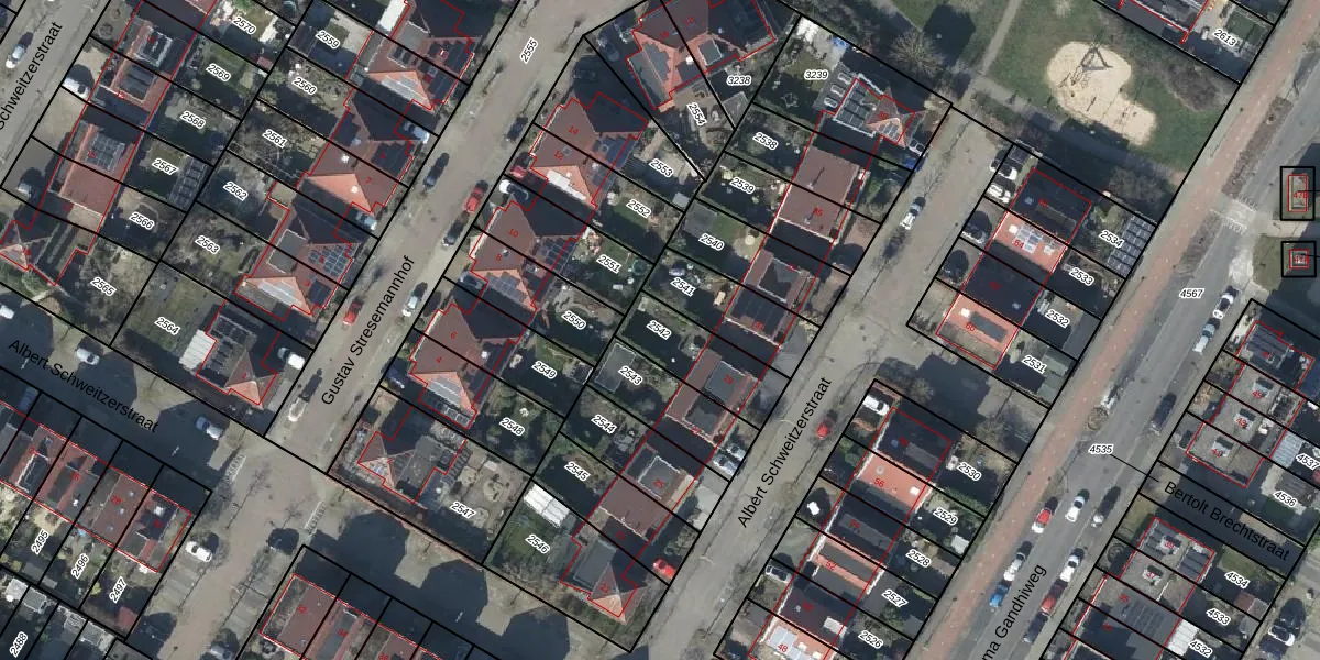 Gebruik de zoekbalk of klik op een perceel om informatie over het perceel te bekijken.