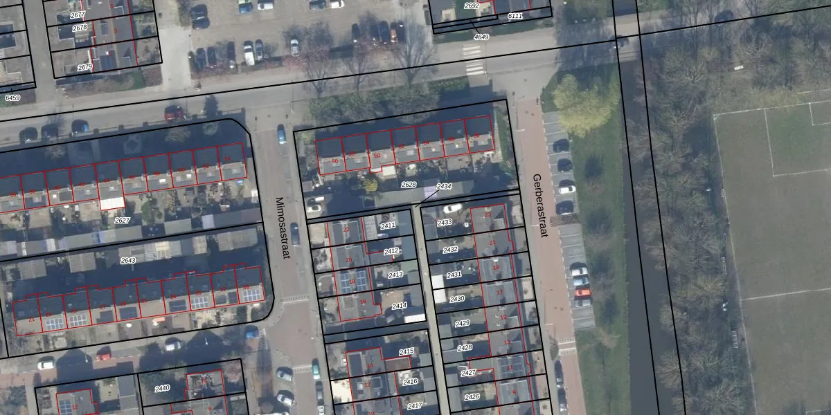 Gebruik de zoekbalk of klik op een perceel om informatie over het perceel te bekijken.