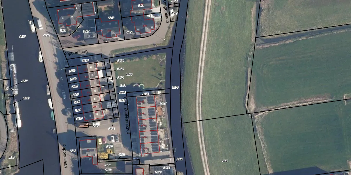 Gebruik de zoekbalk of klik op een perceel om informatie over het perceel te bekijken.