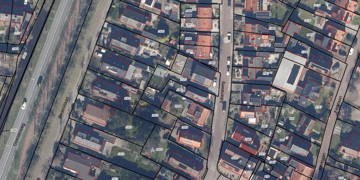 Gebruik de zoekbalk of klik op een perceel om informatie over het perceel te bekijken.