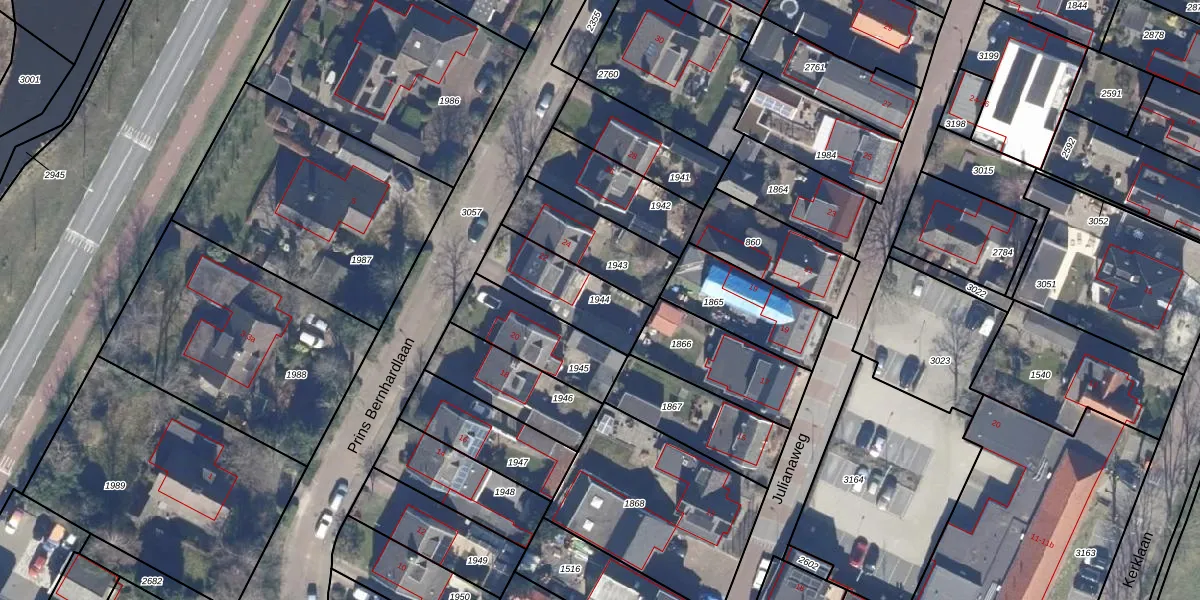 Gebruik de zoekbalk of klik op een perceel om informatie over het perceel te bekijken.