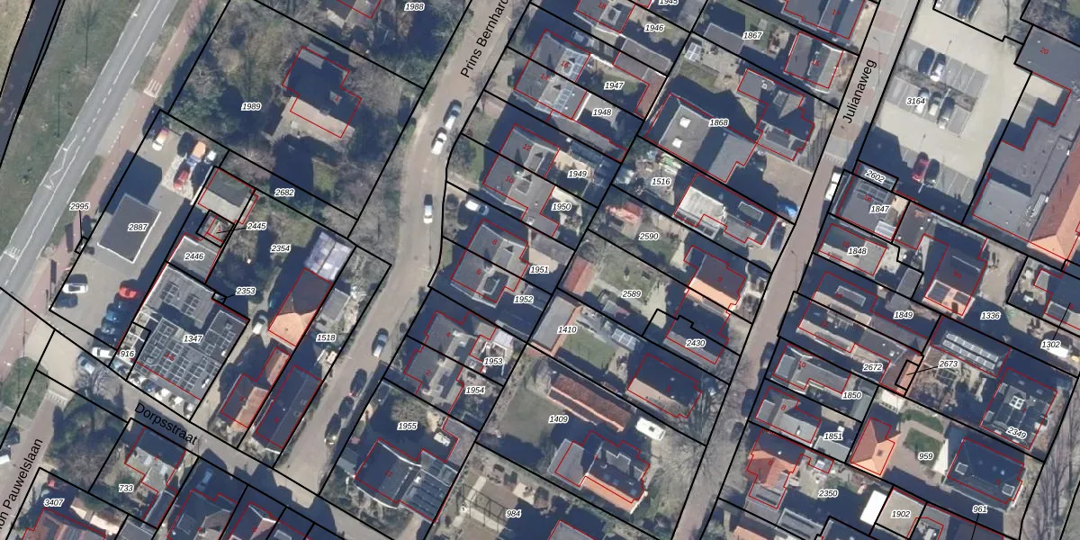 Gebruik de zoekbalk of klik op een perceel om informatie over het perceel te bekijken.