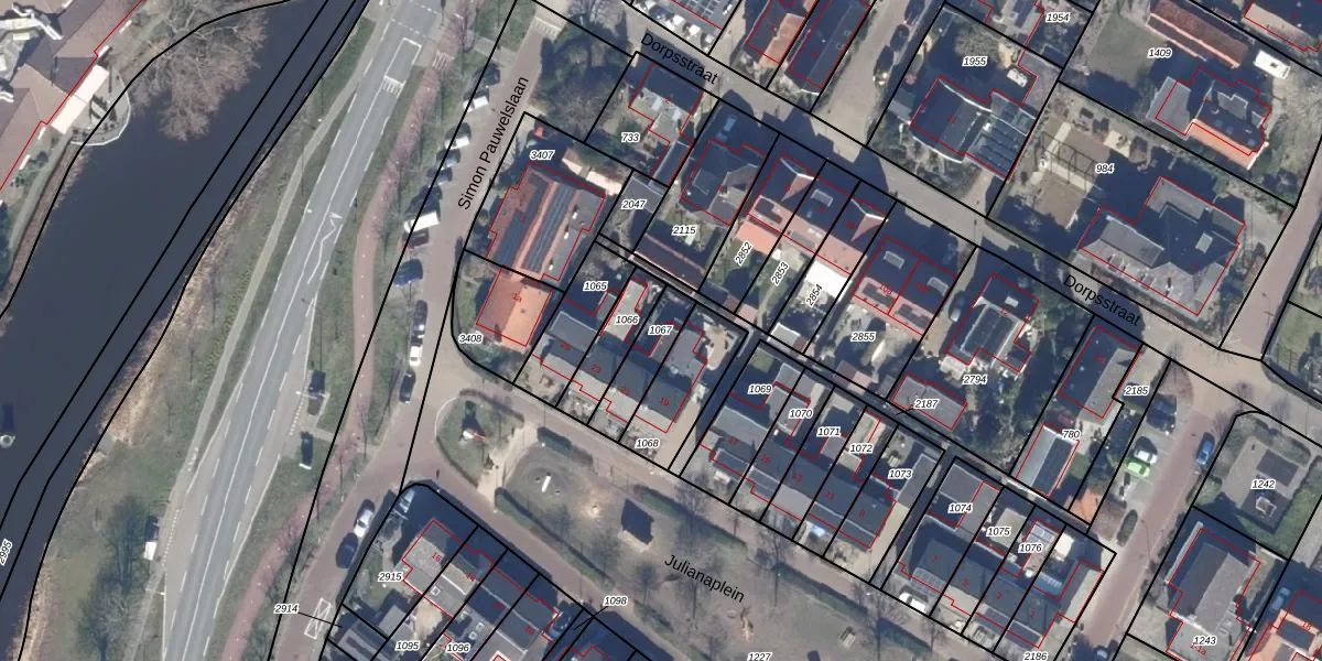 Gebruik de zoekbalk of klik op een perceel om informatie over het perceel te bekijken.