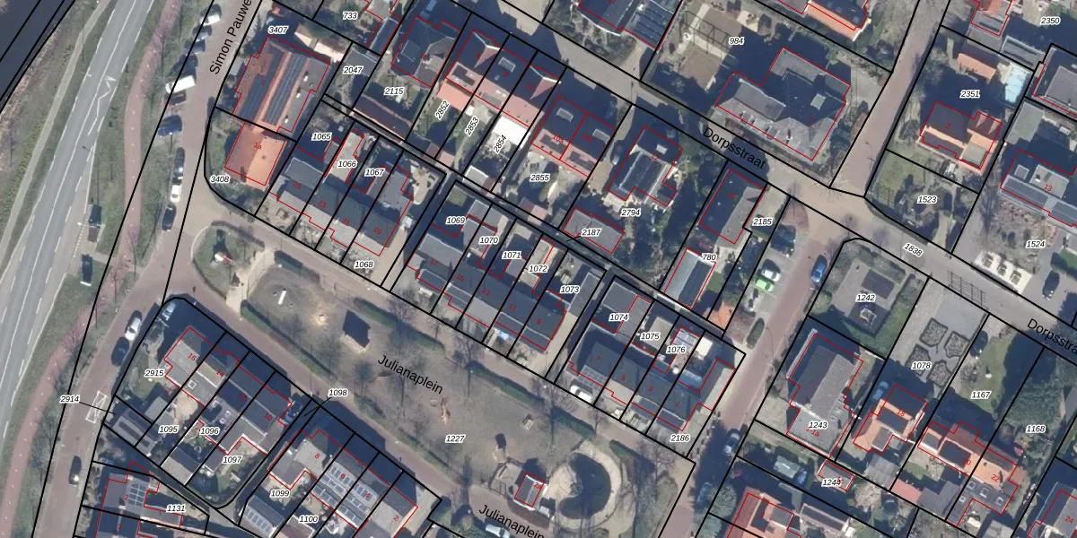Gebruik de zoekbalk of klik op een perceel om informatie over het perceel te bekijken.