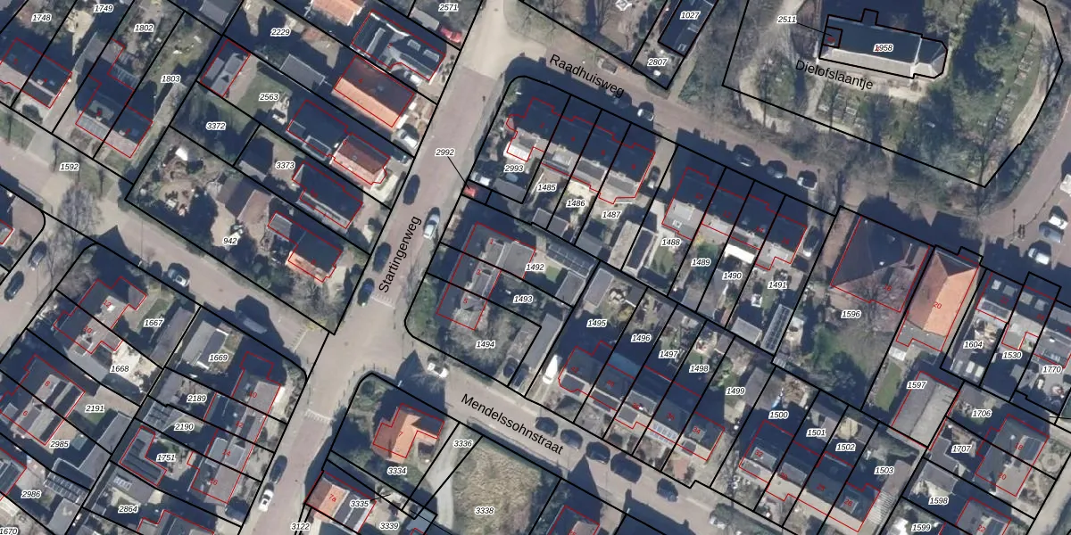 Gebruik de zoekbalk of klik op een perceel om informatie over het perceel te bekijken.