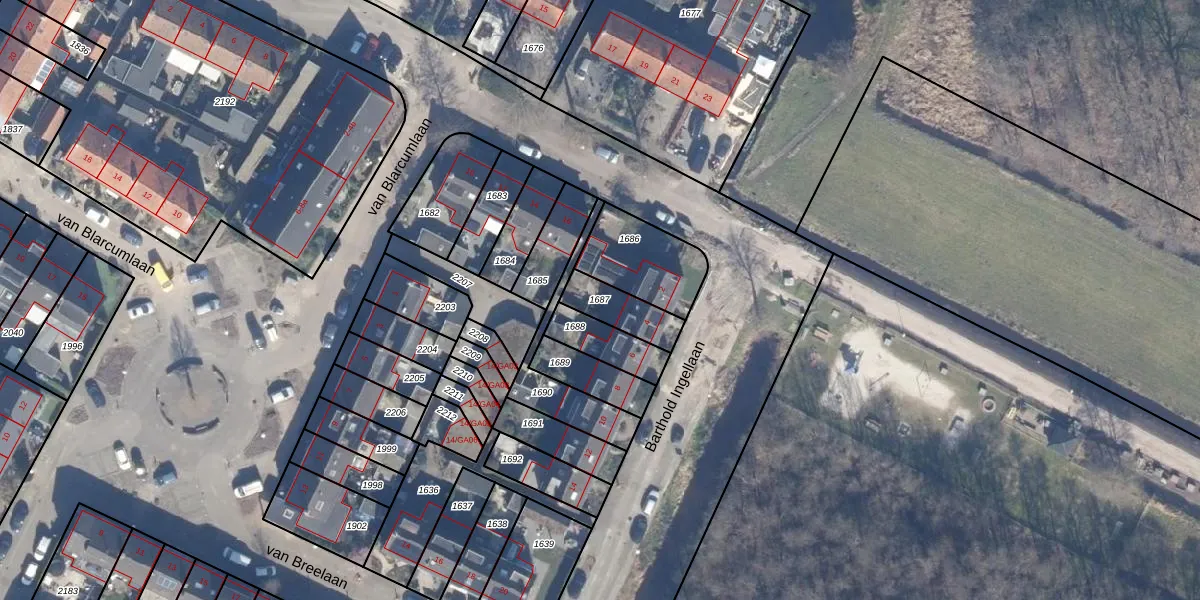 Gebruik de zoekbalk of klik op een perceel om informatie over het perceel te bekijken.