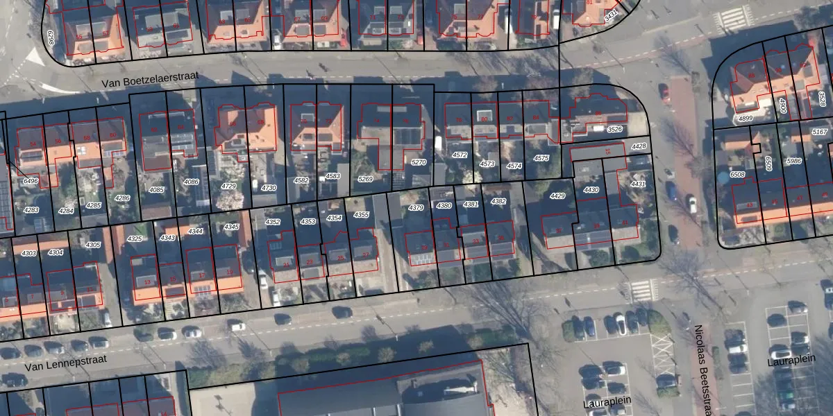Gebruik de zoekbalk of klik op een perceel om informatie over het perceel te bekijken.