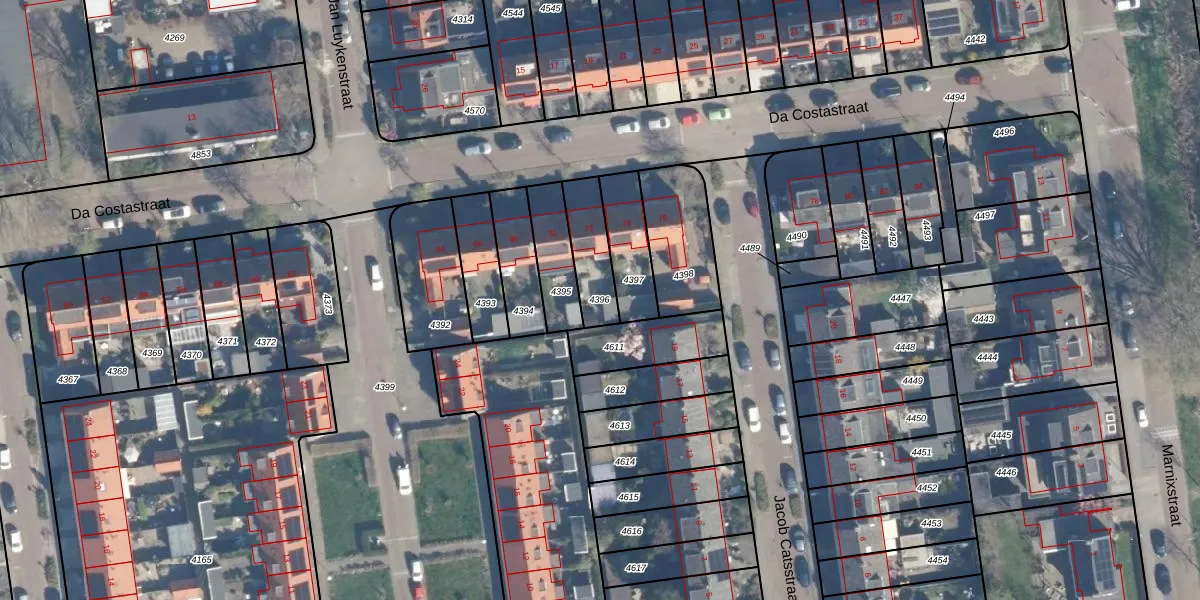 Gebruik de zoekbalk of klik op een perceel om informatie over het perceel te bekijken.