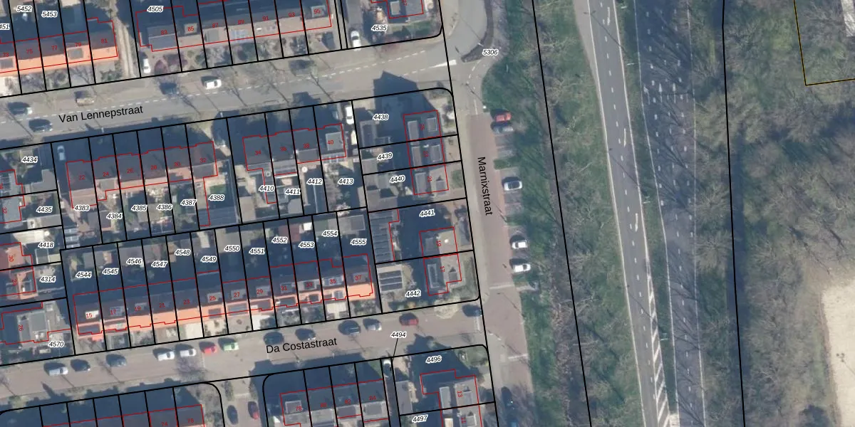 Gebruik de zoekbalk of klik op een perceel om informatie over het perceel te bekijken.