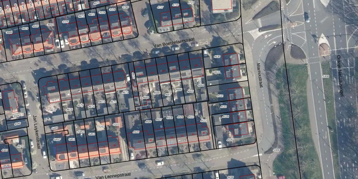 Gebruik de zoekbalk of klik op een perceel om informatie over het perceel te bekijken.