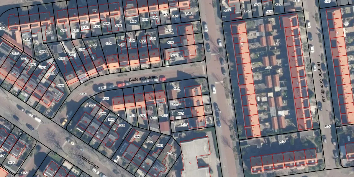 Gebruik de zoekbalk of klik op een perceel om informatie over het perceel te bekijken.