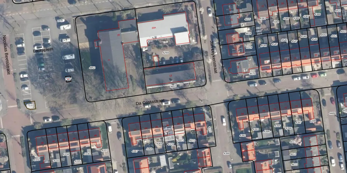 Gebruik de zoekbalk of klik op een perceel om informatie over het perceel te bekijken.
