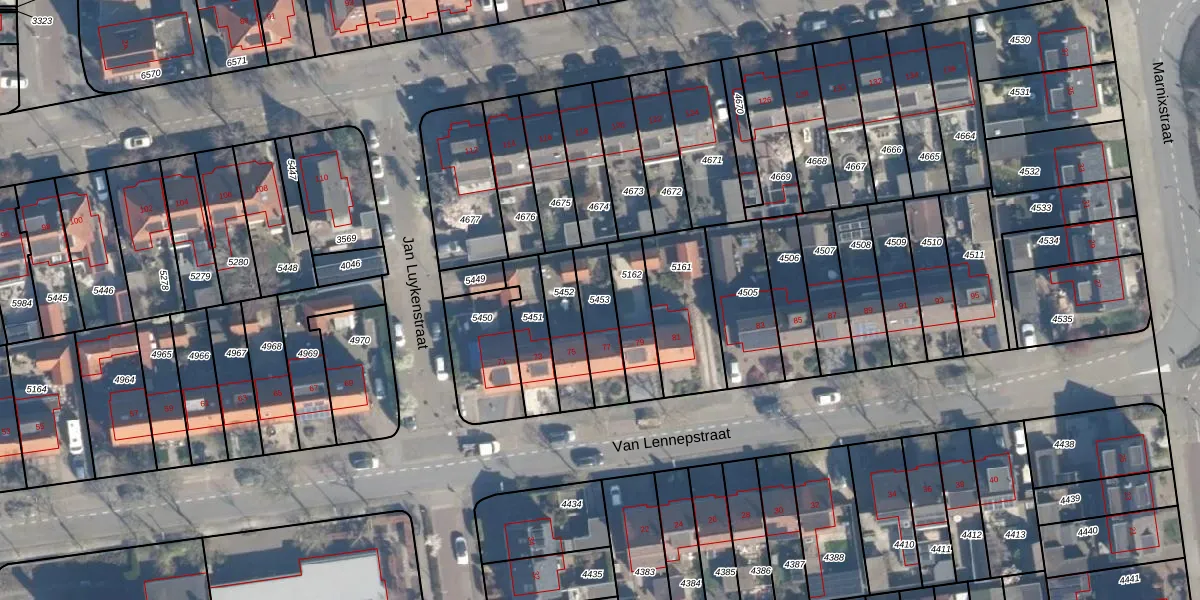 Gebruik de zoekbalk of klik op een perceel om informatie over het perceel te bekijken.