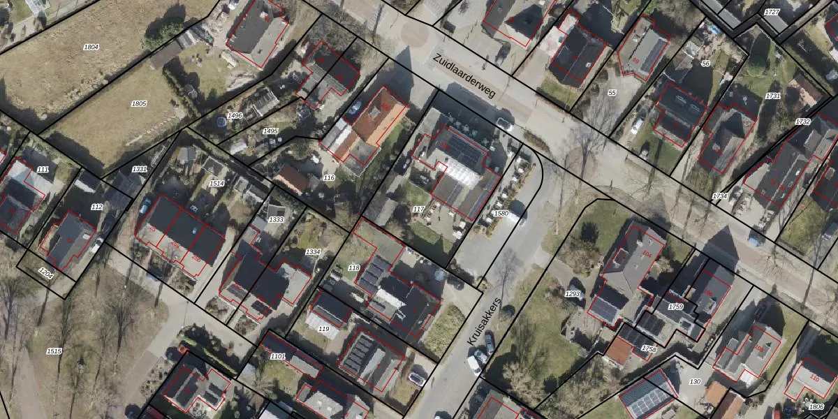 Gebruik de zoekbalk of klik op een perceel om informatie over het perceel te bekijken.
