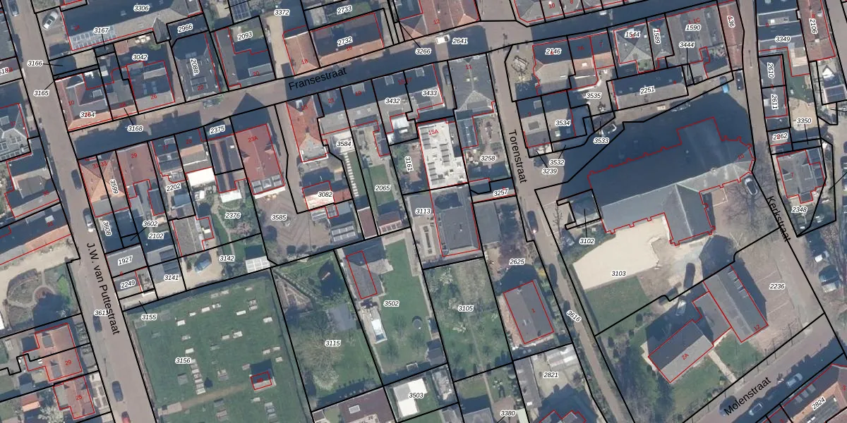 Gebruik de zoekbalk of klik op een perceel om informatie over het perceel te bekijken.