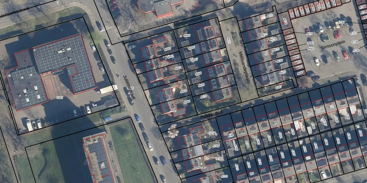 Gebruik de zoekbalk of klik op een perceel om informatie over het perceel te bekijken.