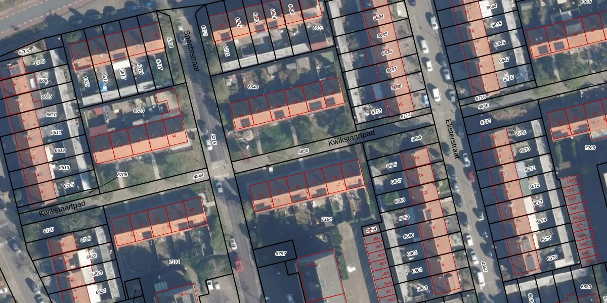 Gebruik de zoekbalk of klik op een perceel om informatie over het perceel te bekijken.