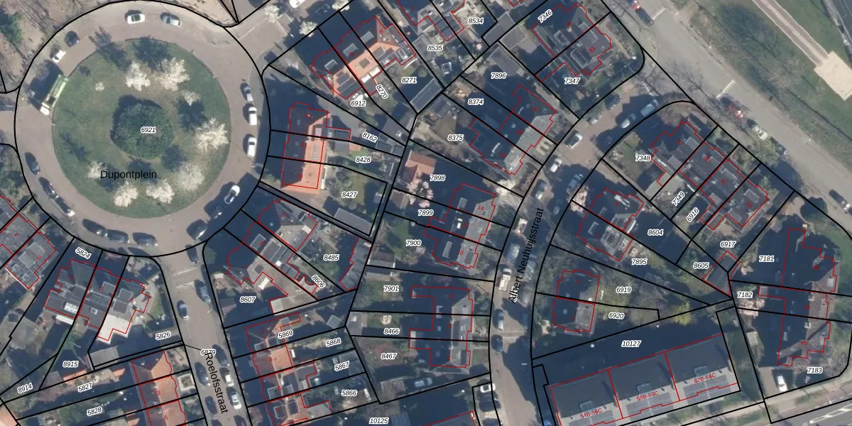 Gebruik de zoekbalk of klik op een perceel om informatie over het perceel te bekijken.
