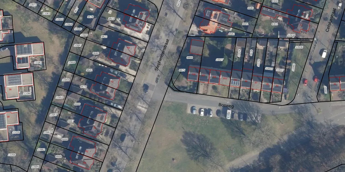 Gebruik de zoekbalk of klik op een perceel om informatie over het perceel te bekijken.