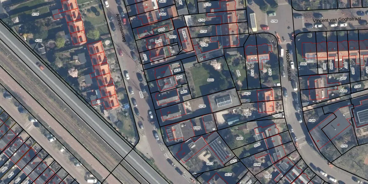 Gebruik de zoekbalk of klik op een perceel om informatie over het perceel te bekijken.