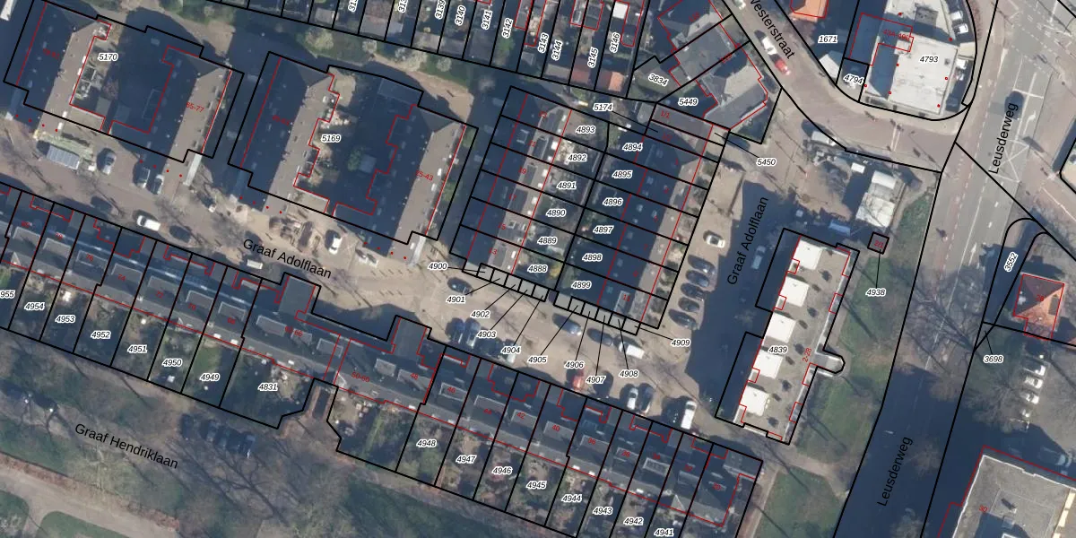 Gebruik de zoekbalk of klik op een perceel om informatie over het perceel te bekijken.