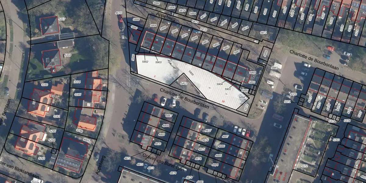 Gebruik de zoekbalk of klik op een perceel om informatie over het perceel te bekijken.