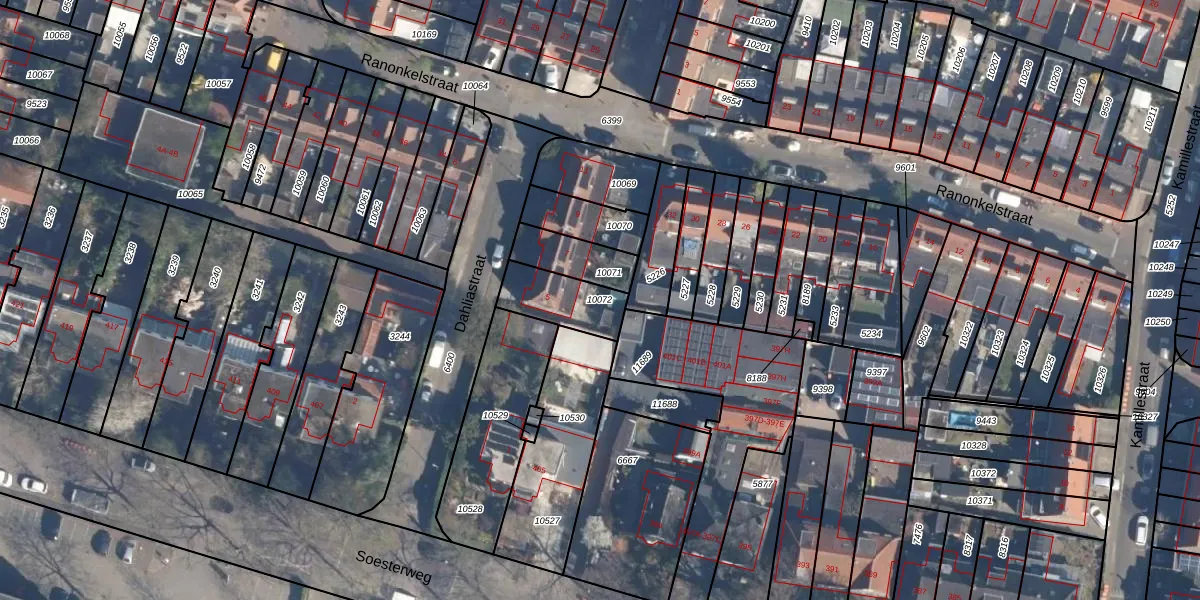 Gebruik de zoekbalk of klik op een perceel om informatie over het perceel te bekijken.